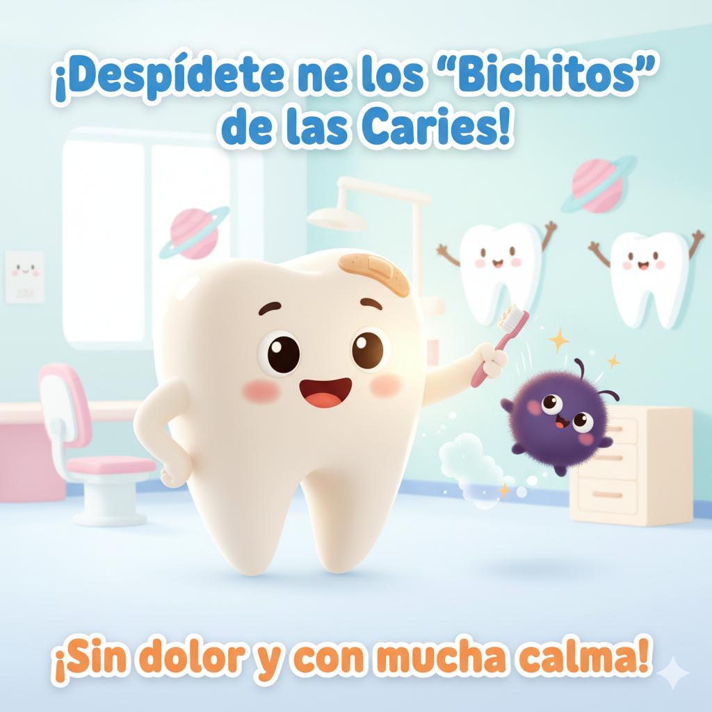 Si encontramos algún "agujerito" (carie), no te preocupes. Con la Operatoria Dental, lo reparamos de forma rápida y gentil. Usamos materiales seguros y estéticos (del color del diente) para que la sonrisa de tu hij@ quede como nueva. Recupera la salud y la función de sus dientecitos. ¡Sin dolor y con mucha calma!